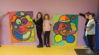 Les élèves ont étudié plusieurs clowns de Bernard Buffet. Après avoir observé leurs points communs, chacun a réalisé son propre clown à la manière de cet artiste.