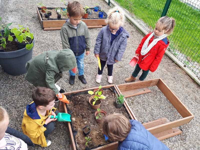 GrĂące Ă l’aide des parents, et Ă leurs dons, nos Ă©lĂšves de maternelle ont pu planter diffĂ©rentes espĂšces de tomates, de fleurs et d’aromates! Ils ont adorĂ© jardiner.