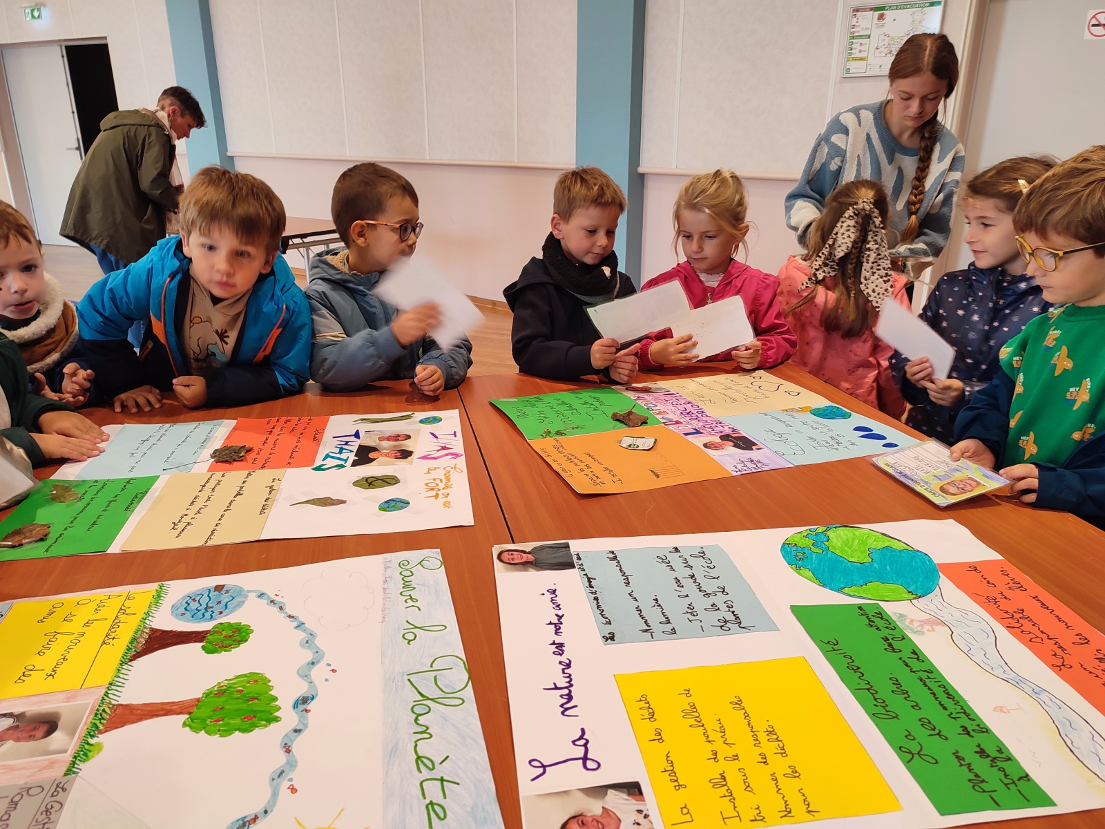 Le lundi, des binômes paritaires d’élèves de CE1 CE2 et de CM1 CM2 nous ont présentés leur programme pour améliorer l’école. Ces propositions s’appuyaient sur 3 thèmes : la solidarité, la biodiversité, la gestion des ressources et déchets.