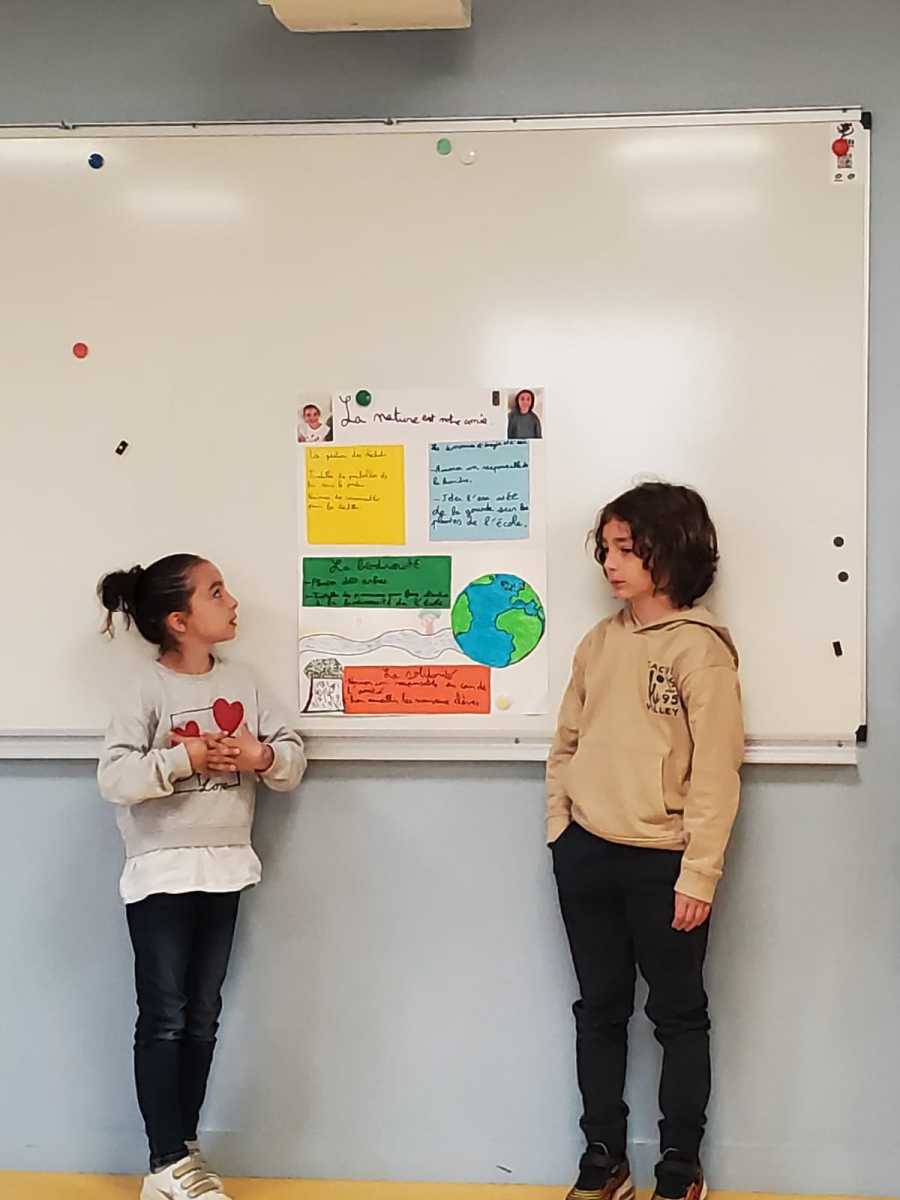 Le lundi, des binômes paritaires d’élèves de CE1 CE2 et de CM1 CM2 nous ont présentés leur programme pour améliorer l’école. Ces propositions s’appuyaient sur 3 thèmes : la solidarité, la biodiversité, la gestion des ressources et déchets.