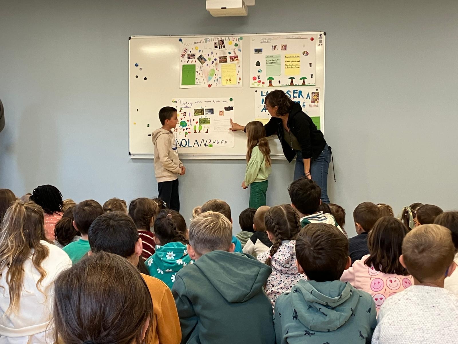 Le lundi, des binômes paritaires d’élèves de CE1 CE2 et de CM1 CM2 nous ont présentés leur programme pour améliorer l’école. Ces propositions s’appuyaient sur 3 thèmes : la solidarité, la biodiversité, la gestion des ressources et déchets.