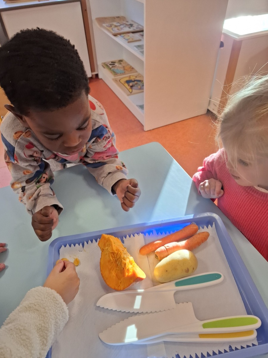 Après l’étude de l’album La soupe au Potiron de Helen Cooper, nous avons nous aussi décidé de cuisiner une soupe au potiron entre amis.