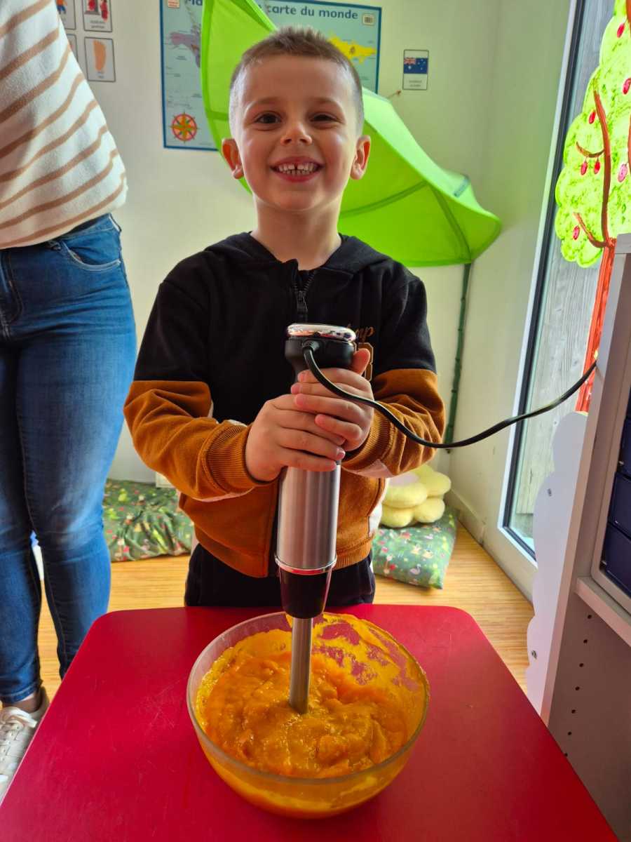 Nous avons épluché, coupé, vidé, cuit et mixé les légumes, puis dégusté la soupe. Quel délice !