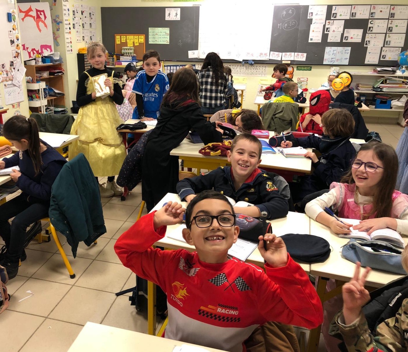 Avec un peu d’avance, nous avons fêter mardi gras à l’école. Chacun a revêtu son plus beau déguisement pour l’occasion.