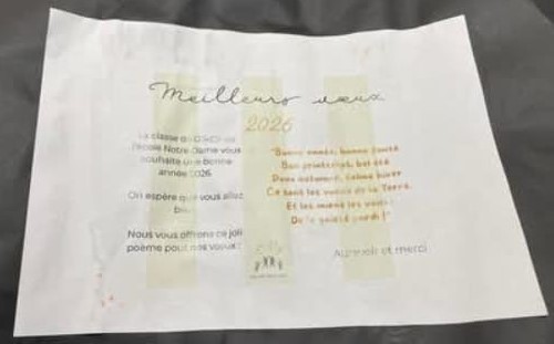 Cartes de vœux 2026 des élèves de l’école Notre Dame.