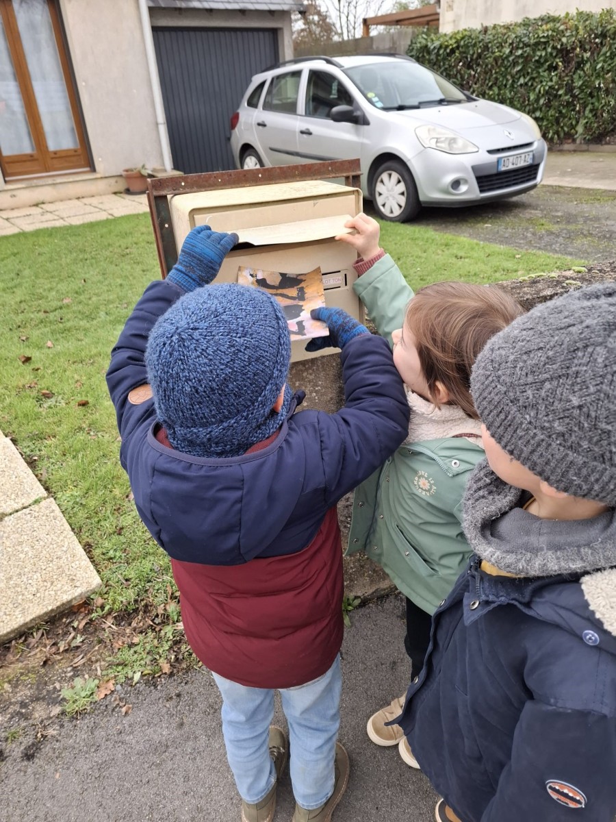 Nous avons répartis par classe les grandes rues de la commune de Mouzeil, et avons fait du porte à porte pour distribuer, dans les boites aux lettres, toutes nos belles cartes. Les élèves ont ainsi pu découvrir des quartiers de Mouzeil qu’ils ne connaissaient pas.