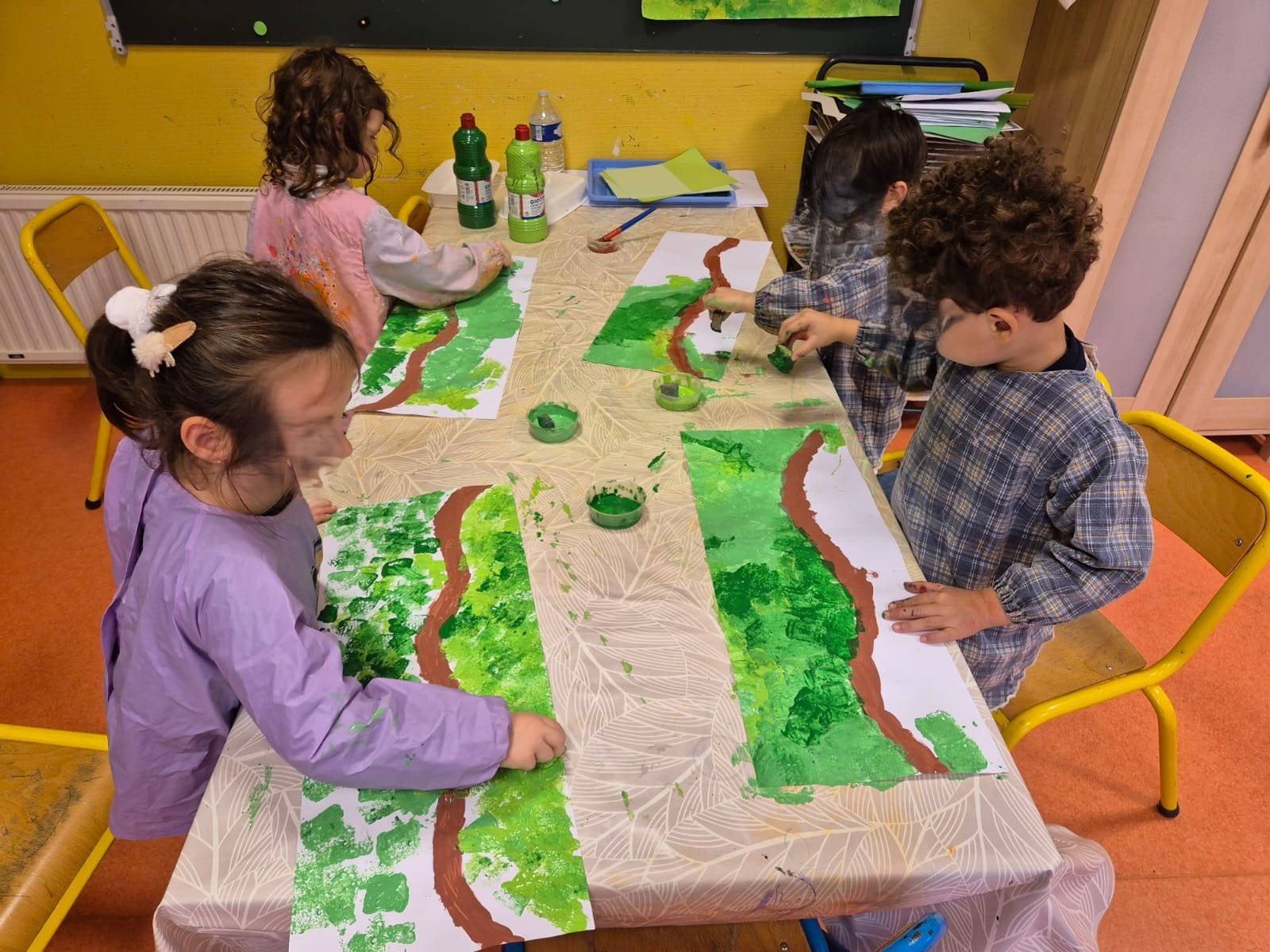 Les enfants ont ensuite participé à la création de leur livre à conter. Chacun a illustré les scènes de Roule Galette à travers différentes activités d’arts visuels : peinture, dessin, collage…