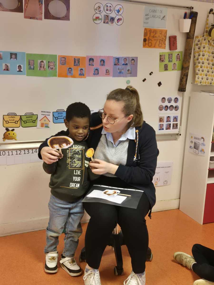 - Les élèves ont abordé la réécriture de l’histoire. Ils ont reformulé les passages du récit avec leurs mots, enrichissant leur vocabulaire et développant leur compréhension de l’histoire. Ils ont appris à raconter une histoire en respectant l’ordre des événements. Petit à petit, ils se sont approprié le récit.