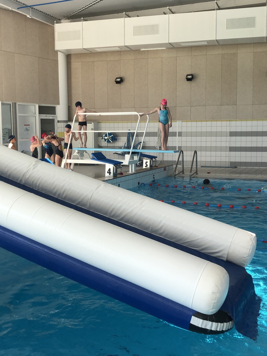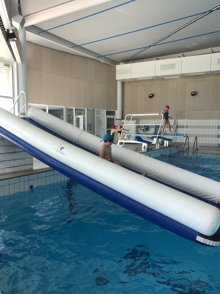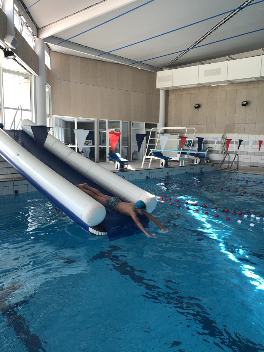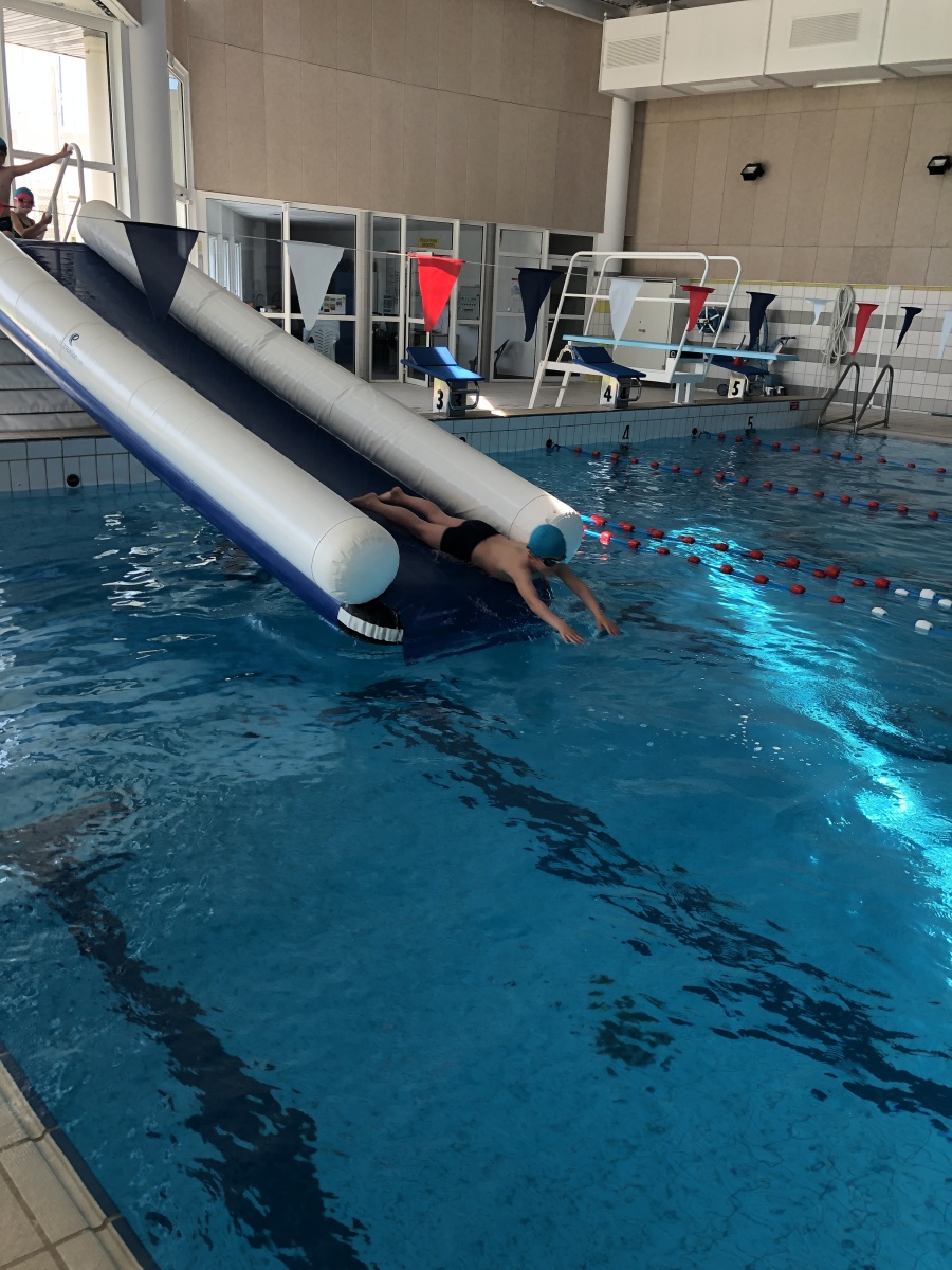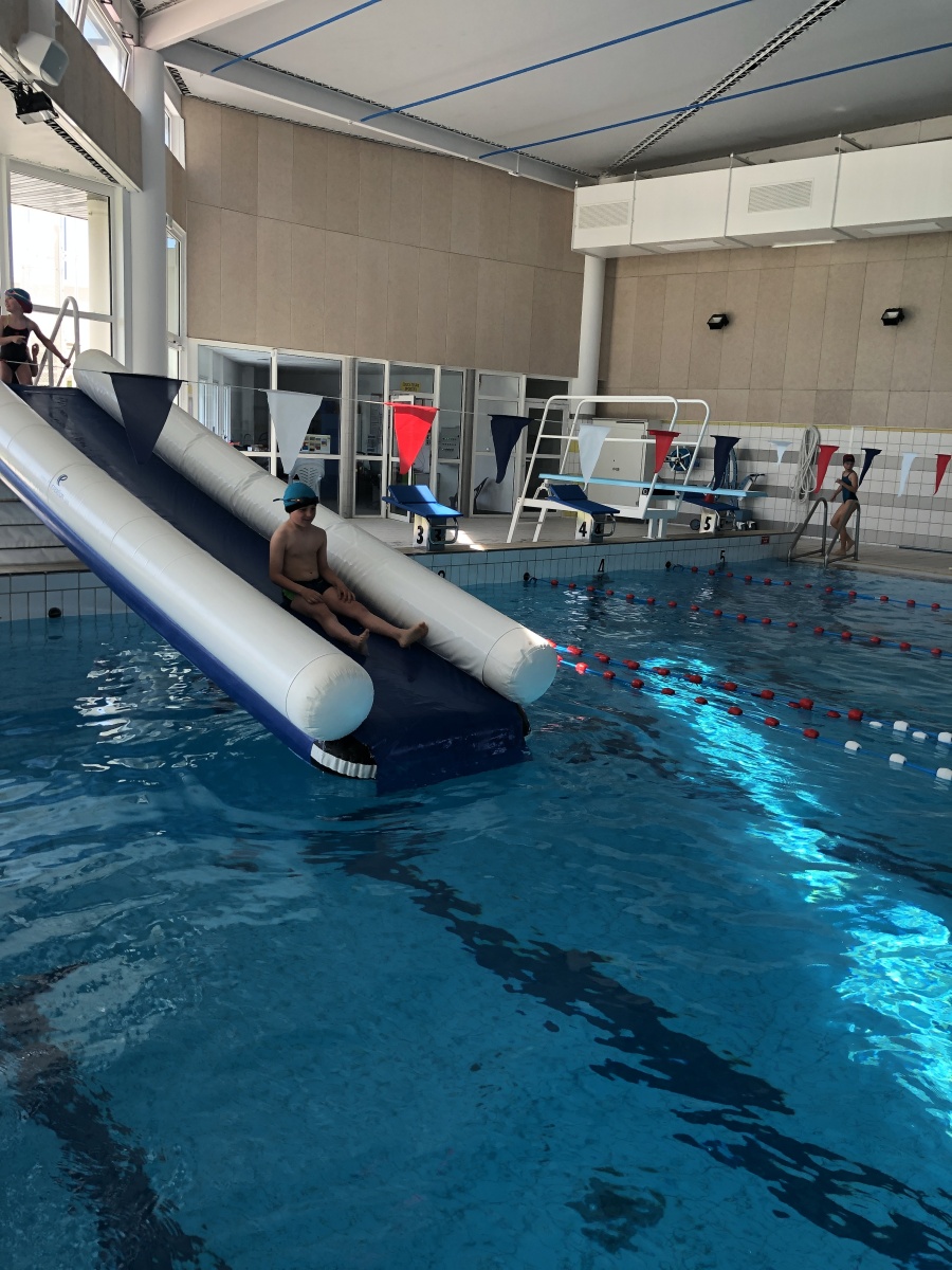 Nous sommes allés Jean Blanchet à Ancenis pour quelques séances de natation. Nous avons travaillé l’aisance aquatique et le savoir nager. La dernière séance était un parcours avec les tapis, les toboggans et les plongeoirs. On en a bien profité.