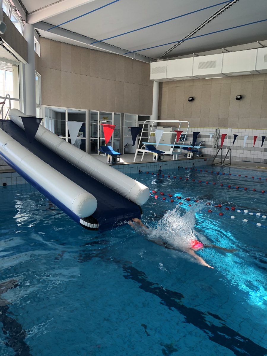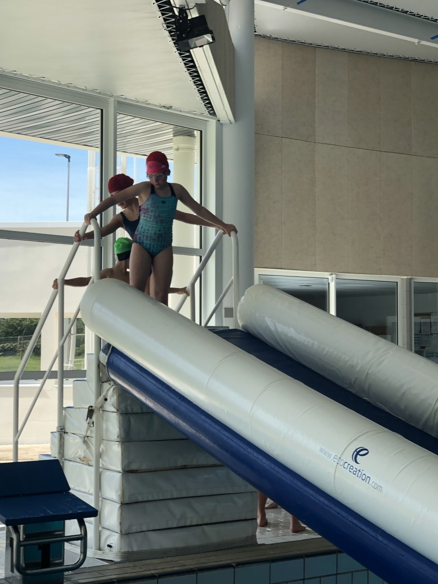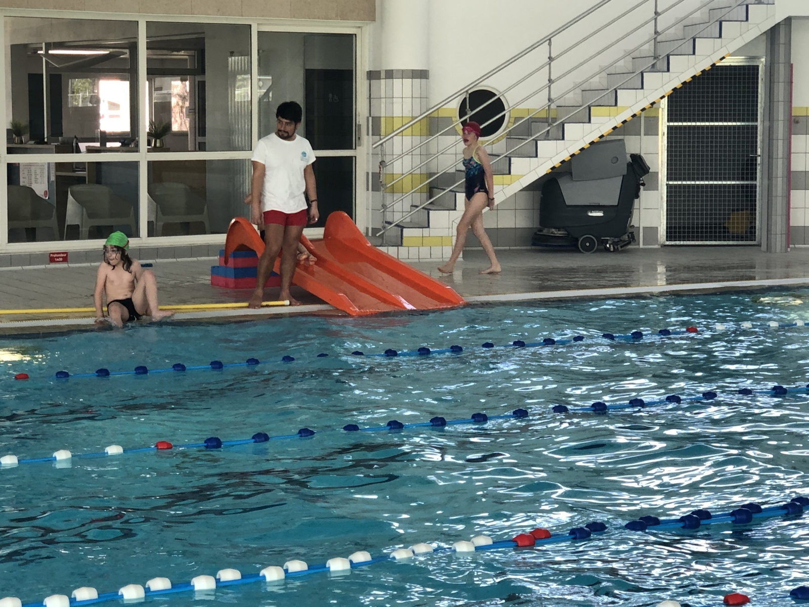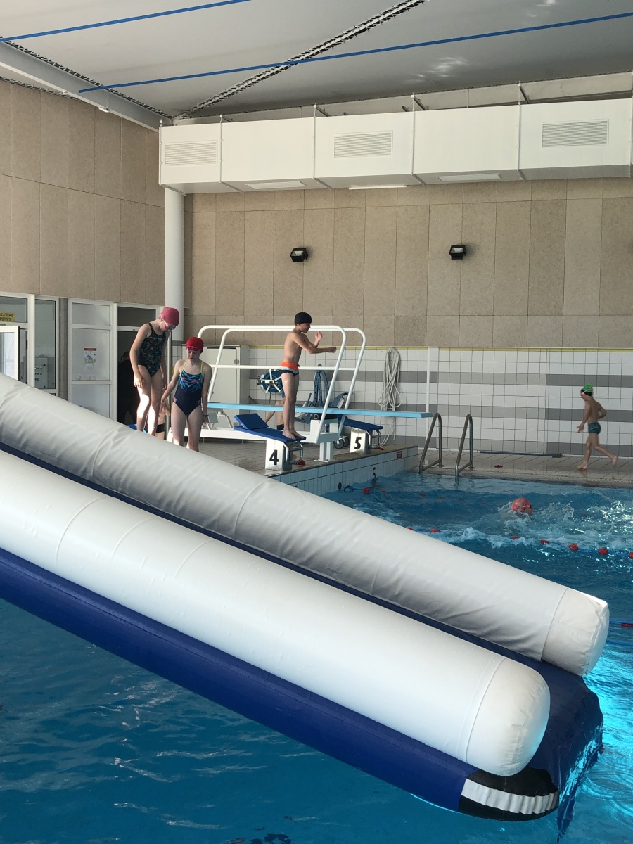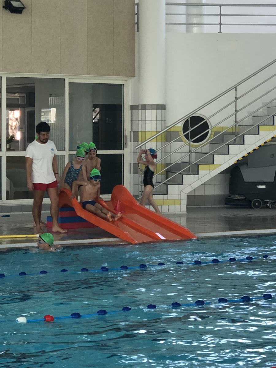 Nous sommes allés Jean Blanchet à Ancenis pour quelques séances de natation. Nous avons travaillé l’aisance aquatique et le savoir nager. La dernière séance était un parcours avec les tapis, les toboggans et les plongeoirs. On en a bien profité.